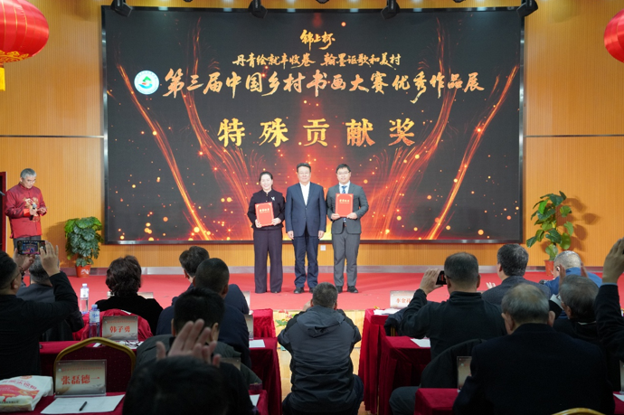 活动为第三届中国乡村书画大赛参展优秀作品、优秀组织单位、特殊贡献单位颁发证书。