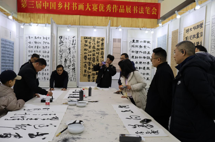 李金祥强调,围绕“建设农业强国”目标,通过书画载体激活乡村文化资源,让艺术赋美乡村,走进乡村。书画艺术作为中华优秀传统文化的重要组成部分,在丰富人民精神世界、增强人民精神力量方面具有不可替代的作用。李金祥指出,要始终尊重农民在乡村文化活动中的主体地位,把群众是否喜闻乐见、是否可感可及作为重要衡量标准。今天展出的这些精品佳作不仅是艺术的结晶,更是农民群众对美好生活的热切向往,彰显了乡村振兴中“既要塑形,更要铸魂”的深刻内涵。
