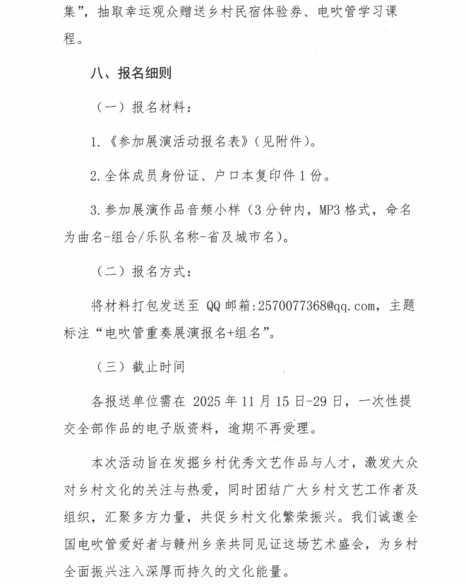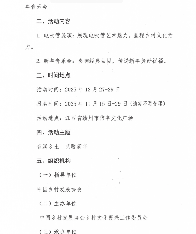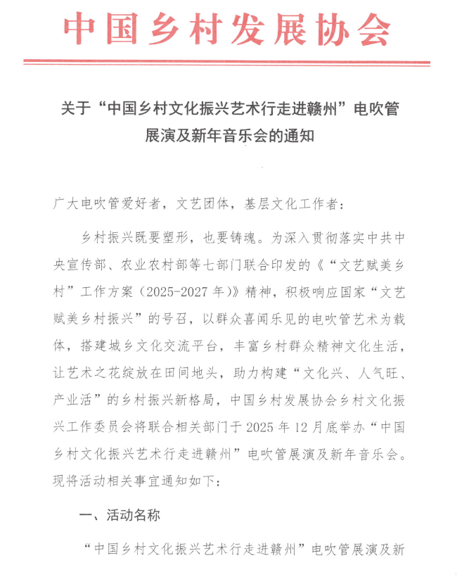 关于“中国乡村文化振兴艺术行走进赣州”电吹管展演及新年音乐会的通知