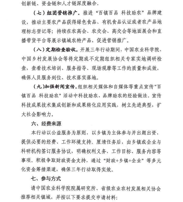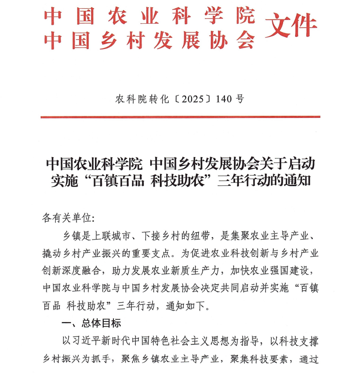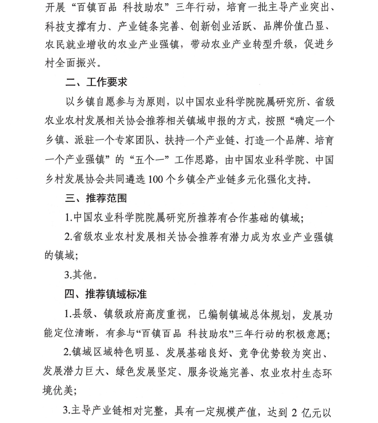 关于启动实施“百镇百品 科技助农”三年行动的通知
