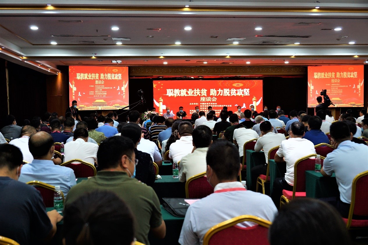 8月17日,经国务院扶贫办批准,由中国扶贫开发协会、北京市扶贫支援办、北京市工商联主办,中华职业教育社、中国外文局、河南省扶贫开发办公室、河南省信阳市支持,中国扶贫开发协会企业家副会长单位北京商鲲教育承办的“职教就业扶贫 助力脱贫攻坚”座谈会在北京召开。来自全国各地有关市、县分管领导、扶贫办主任和职业学校校长共计200余名代表与会。