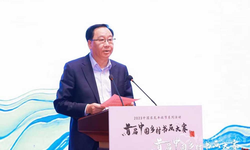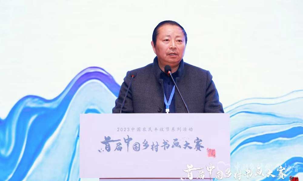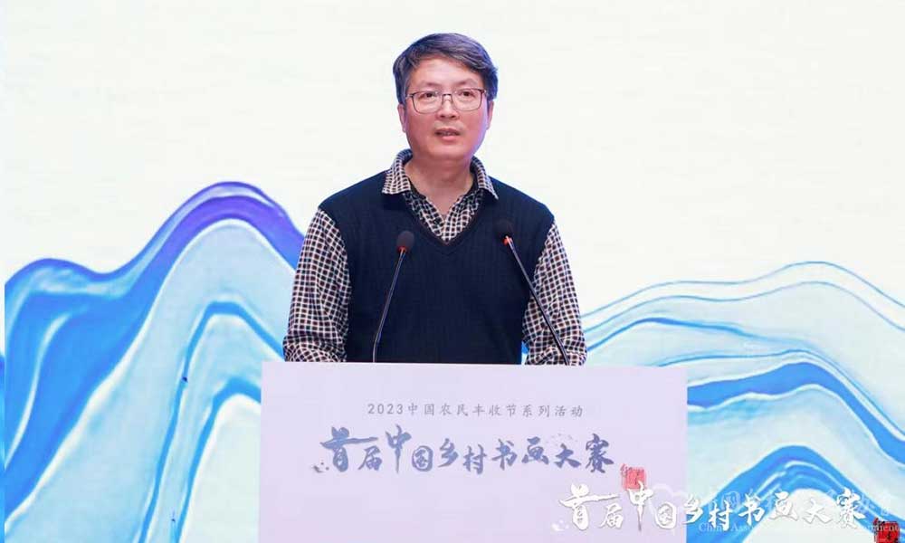 著名画家、美术评论家、中国美术家协会主席范迪安以视频方式为活动致辞。他说,用书画的方式讴歌新时代“三农”的崭新气象,是艺术服务农村、服务农民的重要体现。他指出,这次大赛是2023年中国农民丰收节系列活动中别具特色的一个项目,大赛面向全国征集作品,并邀请部分书画名家的作品参展,形成了丰富的展览面貌,这是向广大农民朋友及社会各界人士献上的艺术丰收成果,是书画爱好者和书画名家交流的平台。他希望,通过持续举办这样的大赛,在全国农民书法、农民画普遍繁荣的基础上,进一步提高创作水平,展现艺术质量,增强审美魅力,为乡村振兴中的文化建设做出更大贡献。